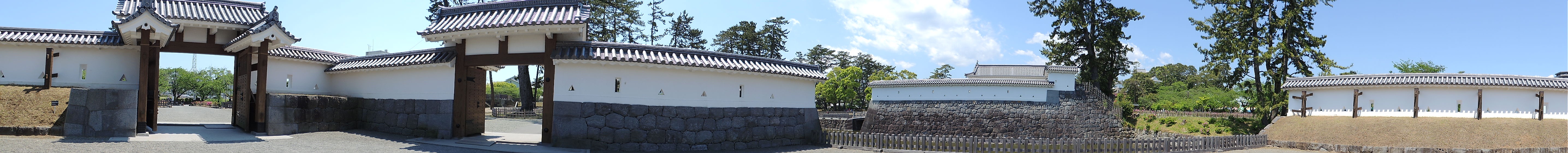 銅門を潜ると、藩主屋敷のあった、二の丸のメイン区画に繋がっている。そこには現在、歴史見聞館が建てられているが大半のスペースには何もない。この日は偶々か、祭りの模擬店などが立ち並んでいた。